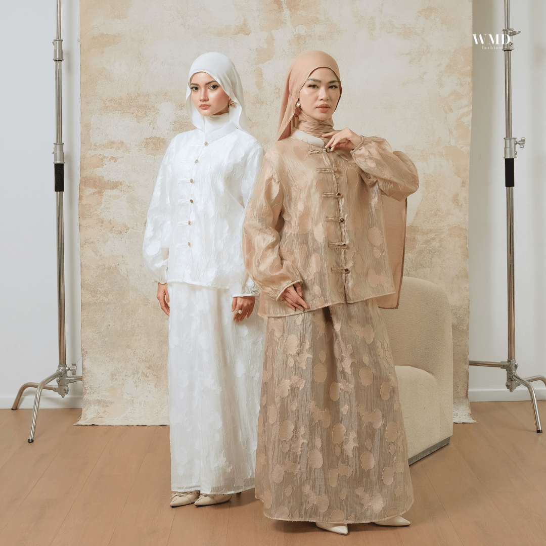 Setelan muslimah elegan yang manis dan feminin. Menggunakan bahan tekstur premium yang ringan dan nyaman dipakai. Atasan detail kancing depan dengan kancing cheongsam , dipadukan rok panjang flowy yang anggun. Cocok untuk acara formal maupun semi-formal.